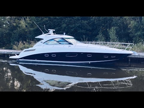 48 feet long, US built from Sea Ray, powered by twin Cummins diesels with Mercruiser Zeus pod drives and joystick control. Twin cabins, twin heads, coupe style sports cruiser.